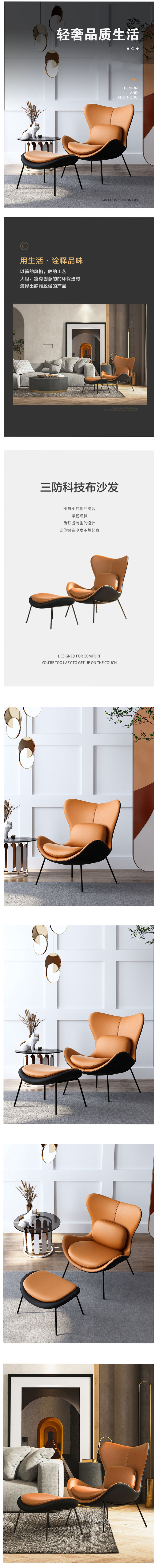 • 北歐陽臺(tái)休閑椅 意式科技布單人椅 輕奢單人沙發(fā)椅極簡(jiǎn)蝸牛椅 1300元