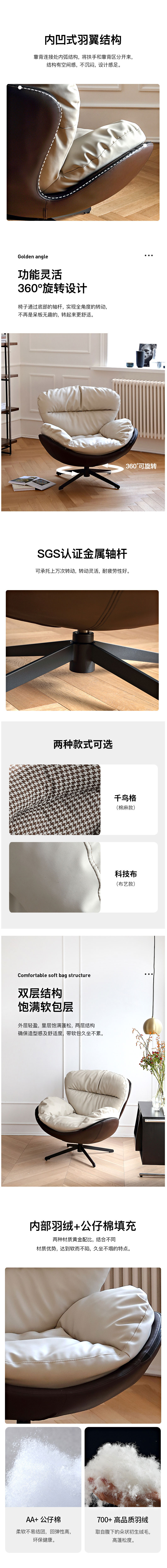 • 北歐科技布羽絨公仔棉旋轉(zhuǎn)輕奢陽臺客廳休閑簡約老虎單人沙發(fā)椅 1017元