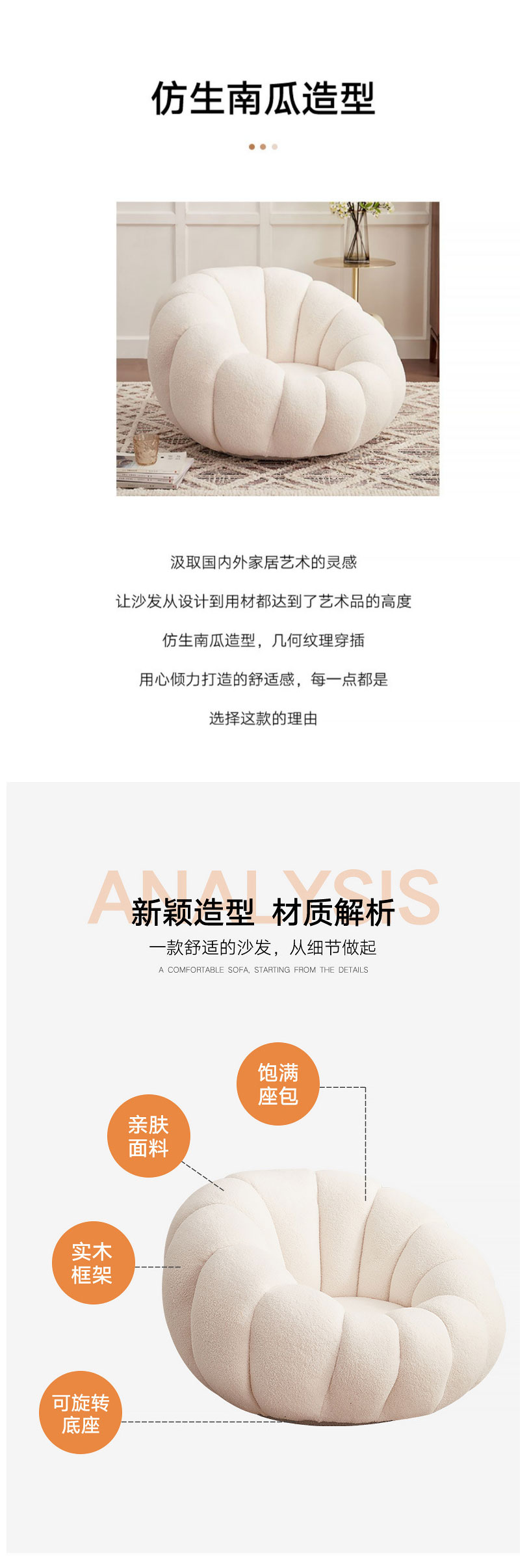 • 懶人沙發(fā)南瓜椅 榻榻米羊羔絨白色休閑可愛(ài)單人小沙發(fā) 517元