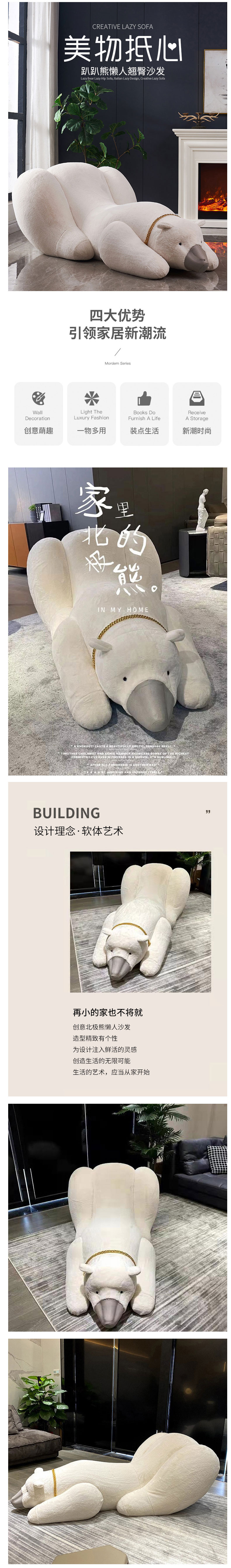 北極熊沙發(fā)布藝意式 輕奢客廳休閑單人動(dòng)物椅子舒適躺椅