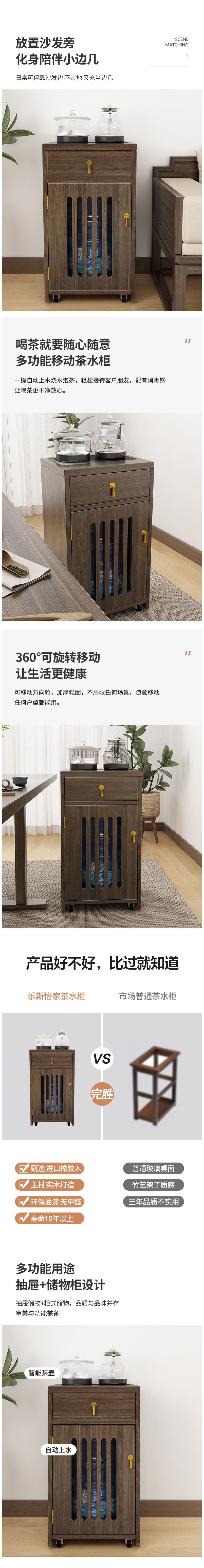現(xiàn)代新中式茶水柜實木側(cè)邊柜燒水柜 下置水桶邊柜飲水機燒水壺一體