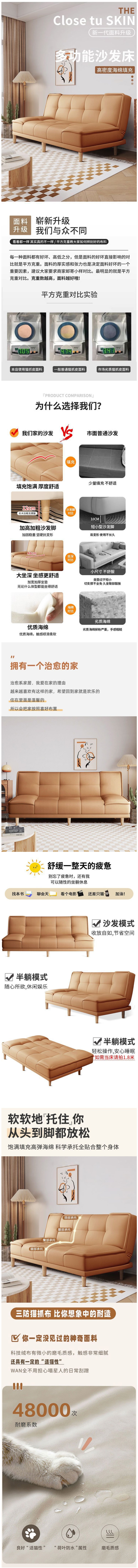 • 貓抓皮沙發(fā)床 一體兩用客廳折疊沙發(fā) 簡易出租屋公寓小戶型雙人沙發(fā)  476元起